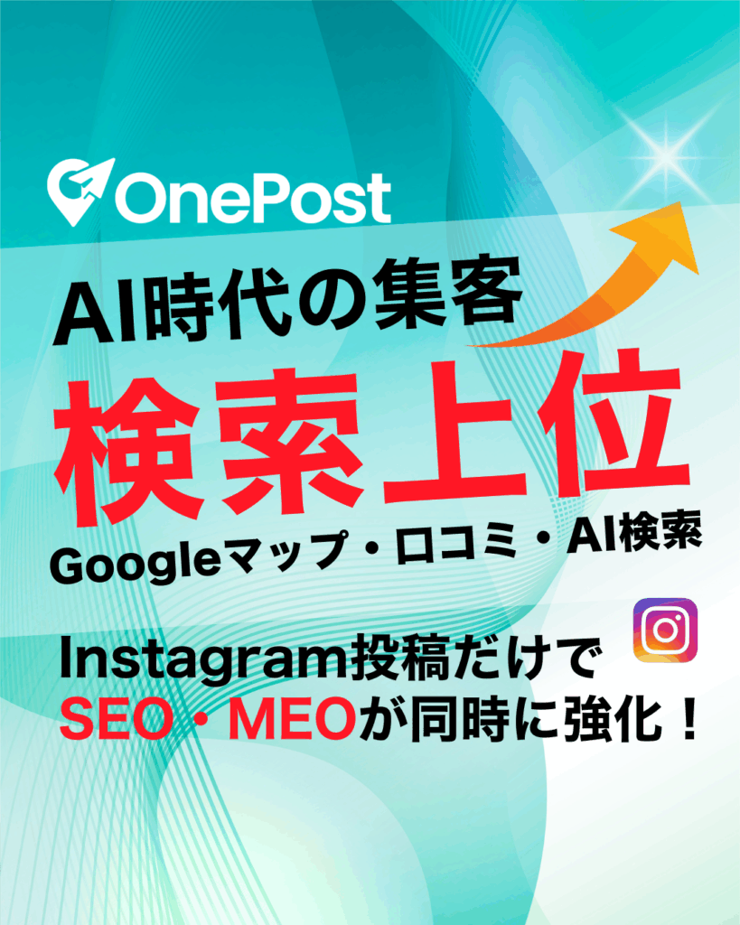 Instagram投稿をするだけでGoogleビジネスや各媒体に自動連携できる仕組みで、口コミ収集・AI自動返信・世界85媒体への拡散など、最新の集客対策が可能です。